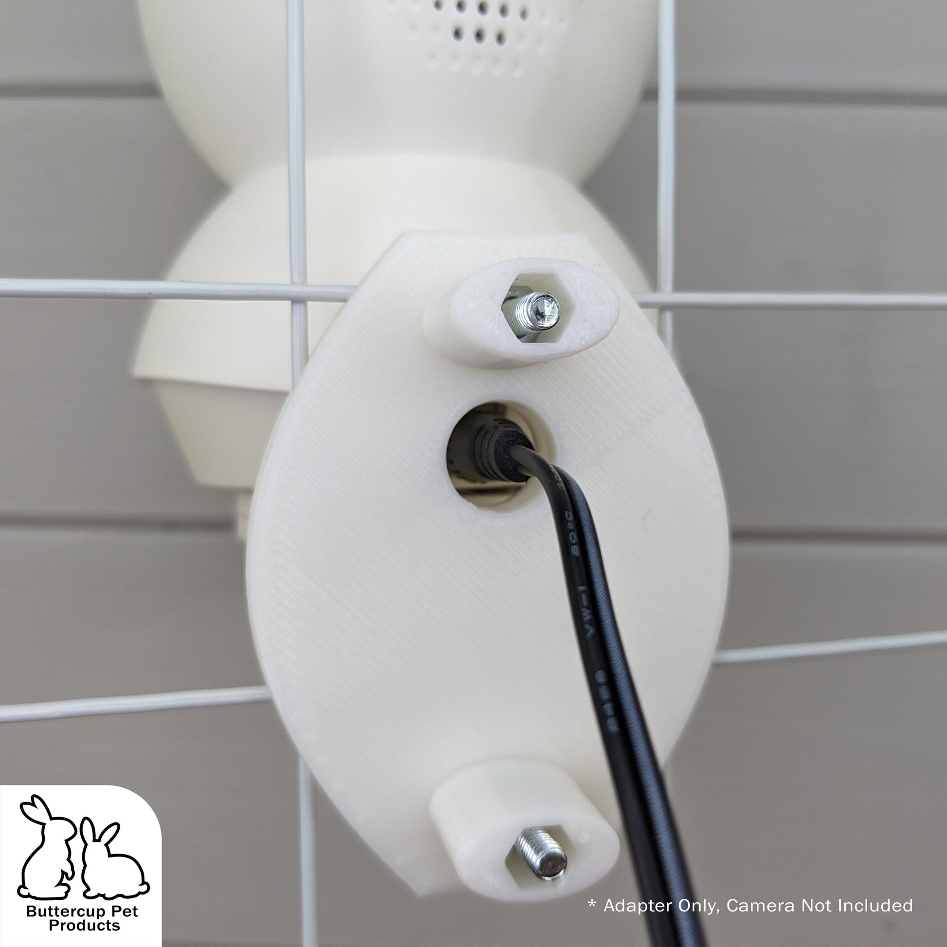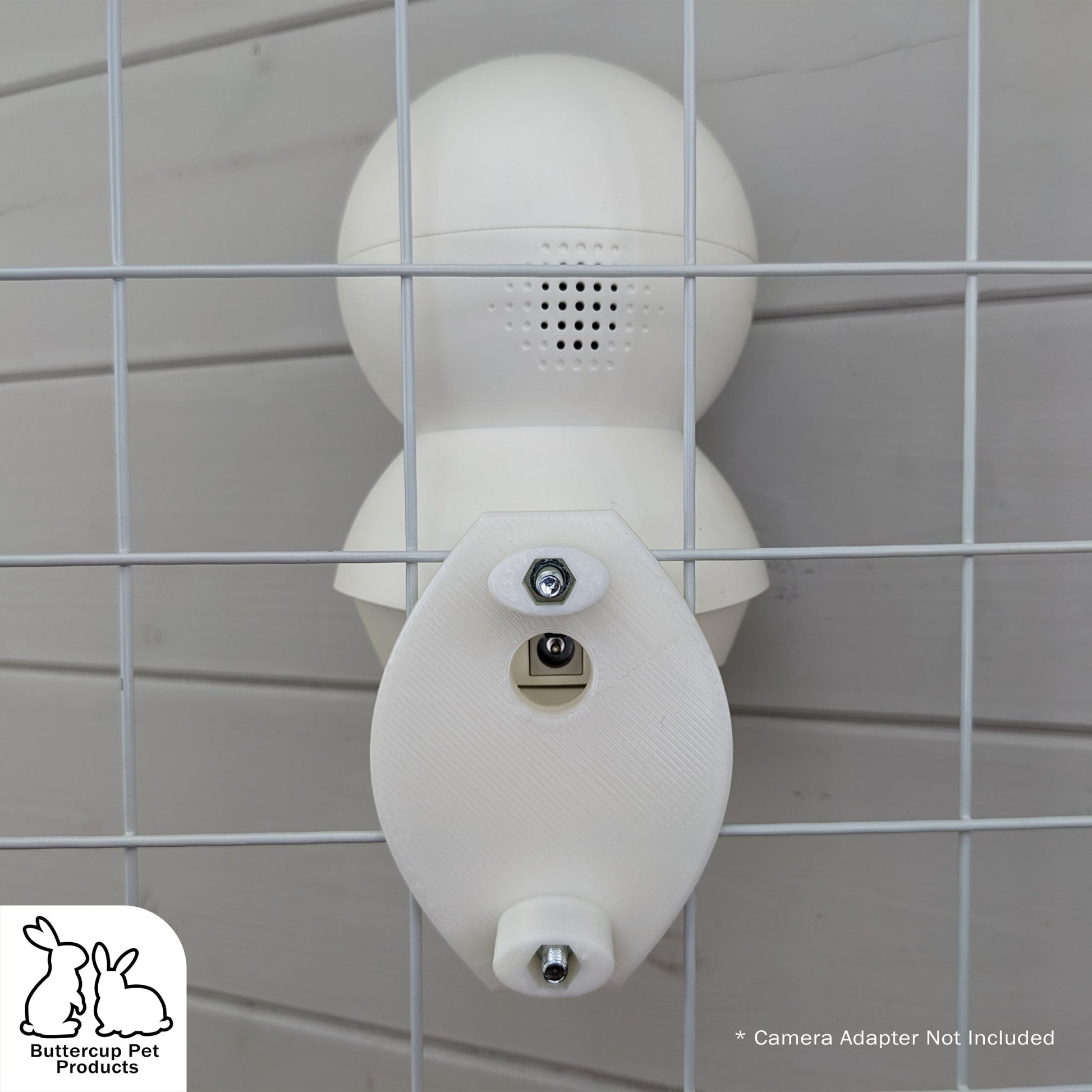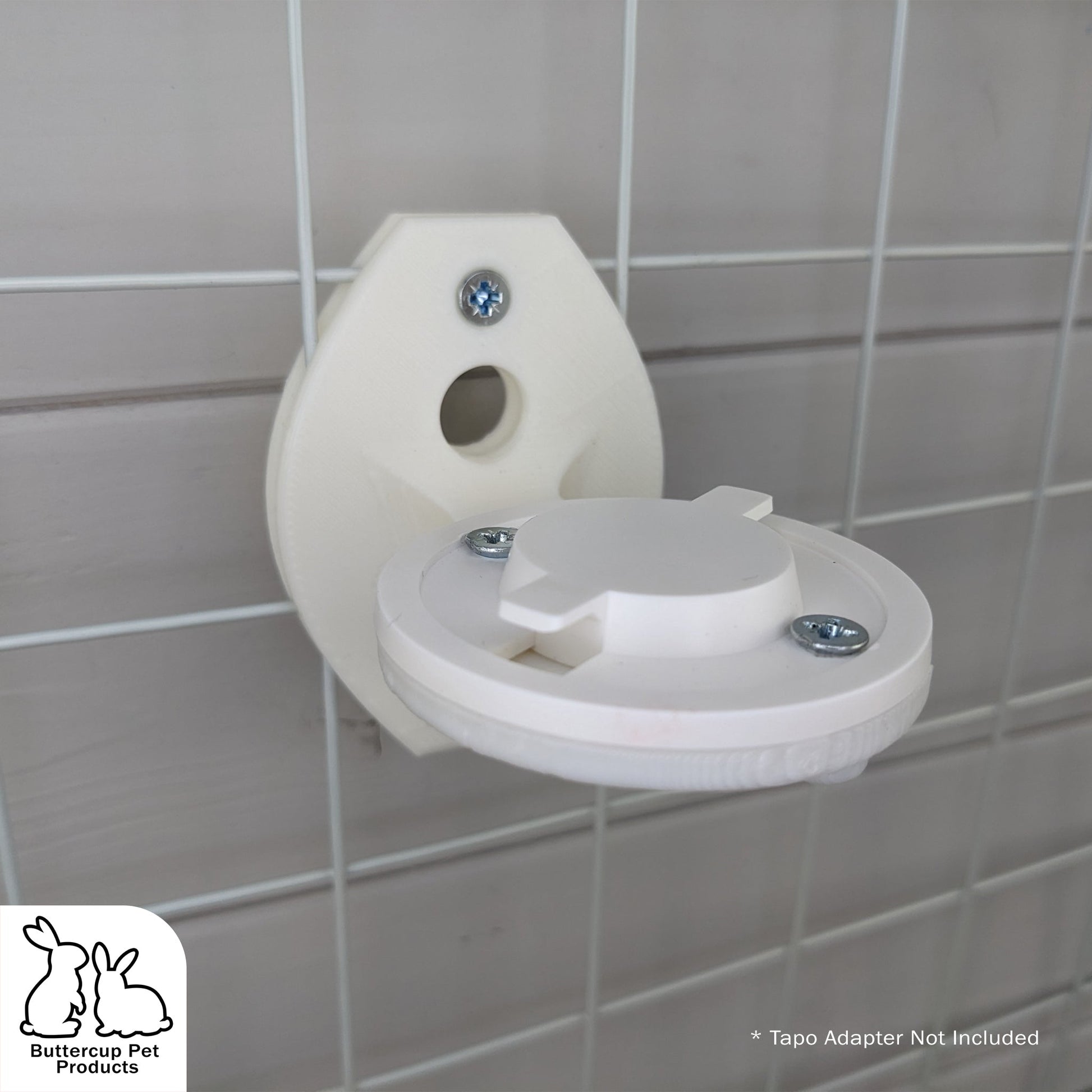 Our cage mounted camera mount is 3D printed from PLA, a food safe plastic and makes use of the Tapo ceiling bracket included with your Tapo camera. Tapoβs ceiling bracket simply attaches to the mount using the provided screws and integrated nuts within the mount itself. The mount features the same cage mounted design used on our bottle holders but with the addition of a cable management hole for the camera's power cable. With the ability to mount your camera anywhere on any cage, you'll be able to keep tabs on your pet's behavior, ensuring they're happy and healthy at all times.